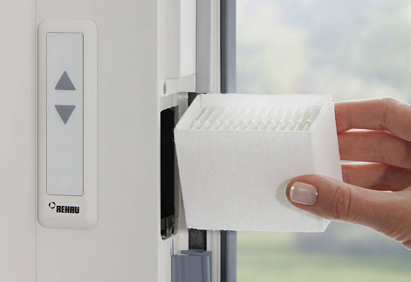 Der in den Fensterrahmen integrierte Grobstaubfilter der Klasse G3 lässt den Großteil an Insekten, Sand, Blütenstaub, Sporen und Pollen zuverlässig draußen.*